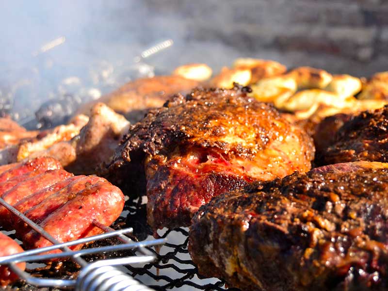 Opcionales:Cazuelas al disco de: Pollo al verdeo, mollejas al vino blanco, panaches de verduras.Fin de fiesta: Pernil de cerdo flambeado.